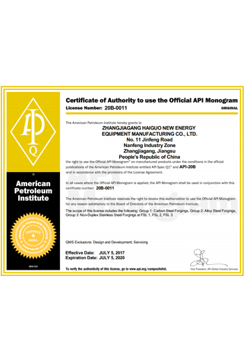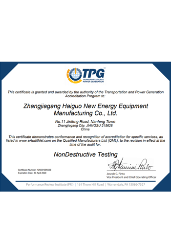 公司取得了美國ABS、法國BV、中國CCS、挪威DNVGL、韓國KR、英國LR、日本NK、意大利RINA等全球八大船級社的工廠認(rèn)證證書,建立了完善的產(chǎn)品質(zhì)量管理體系。先后獲得了美國API20B資質(zhì)證書、API6A資質(zhì)證書、APIQ1體系證書、TPG的NDT認(rèn)證證書、TPG 熱處理認(rèn)證證書、歐盟PED等認(rèn)證證書,同時(shí)也通過了一些國際客戶具有高度專業(yè)要求的資格認(rèn)證。